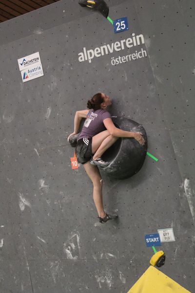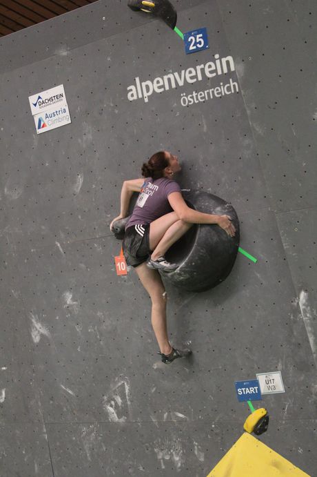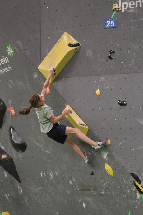 Bei den U15 Mädels reichte es nicht, alle Boulder zu toppen, um ins Finale zu kommen. Jeder Versuch zählte und leider war auch für die zwei Tirolerinnen Theresa Mrak und Lore Klier mit acht Tops, aber 2 Versuchen zu viel, nach der Quali Schluss. Im Finale stiegen die Anforderungen, sodass nur die routinierte Siegerin, Ella Graf alle vier Boulder mit 99,7 Punkten schaffte. Außerdem zeigten im Finale Hanna Pali schließlich auf Platz 7, Matilda Neuschwendter auf Platz 8 und Agnes Gstrein auf Platz 9 ihr Können.