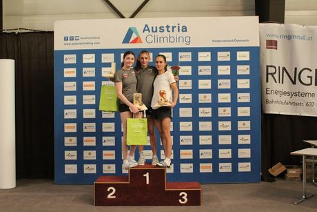 In der Qualifikation der U17 Mädels erreichte nur Eine mit acht Tops 199,6 Punkte und setzte sich auch im Finale mit drei Tops für die Goldmedaille durch: Jakoba Rauter. Bronze holte Marie-Sophie Mailänder mit 2 Tops und 4 Zonen oder 68,8 Punkten. Anna Ehrhart gelang in einem guten Finale Platz 7.